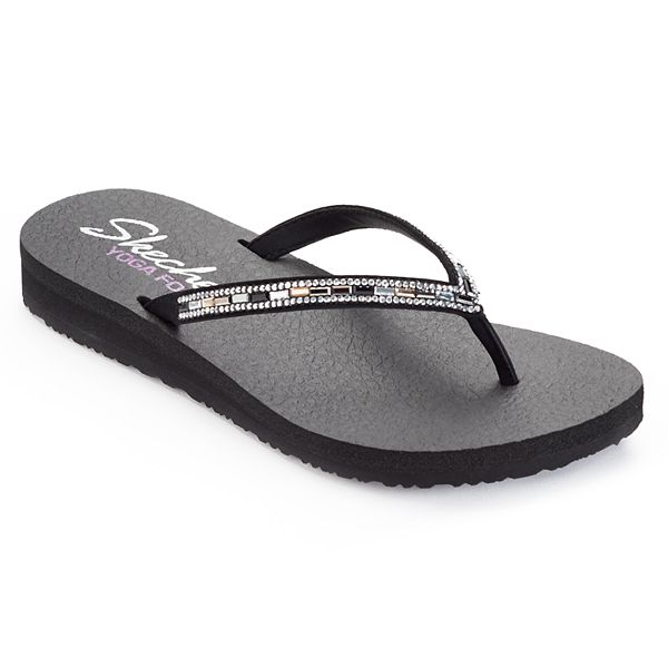 Skechers women s meditation perfect 10 square rhinestone embellished thong flip flop.